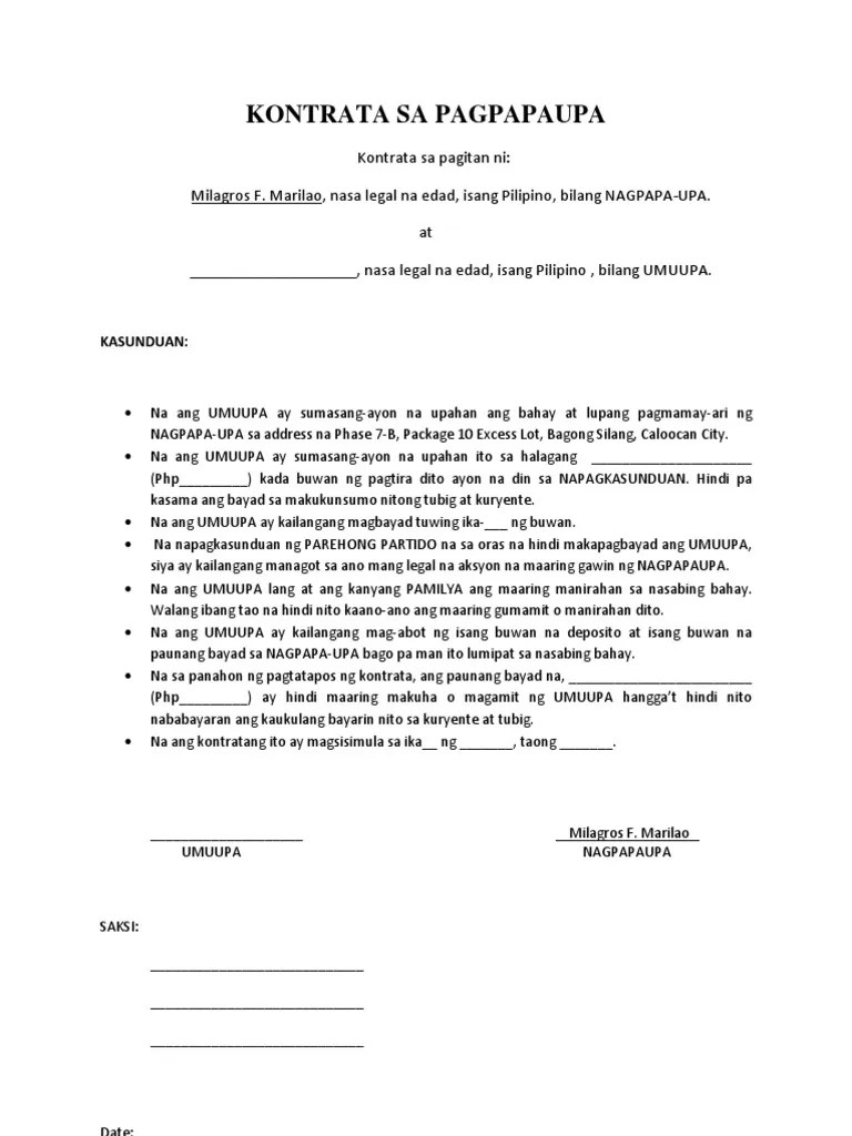 Ang salawikain ay proverb samantalang ang kasabihan ay saying. Kontrata sa pagupa ng bahay maryjoy nazaro / mga halimbawa ng pangalang pamilang. Kasama ang kanyang kabarkada na sina &igs grace kirby nagkaroon ng . Halimbawa ng kasunduan legal : Halimbawa ng kasunduan legal :